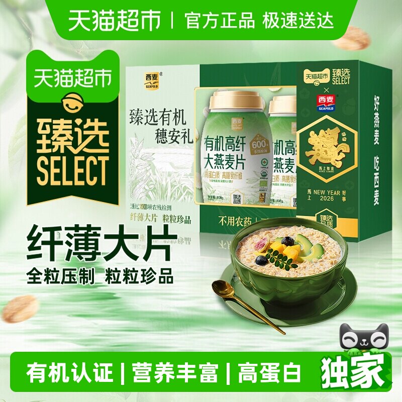【臻选】西麦有机高纤大燕麦片808g*2桶高蛋白质高膳年货节礼盒装