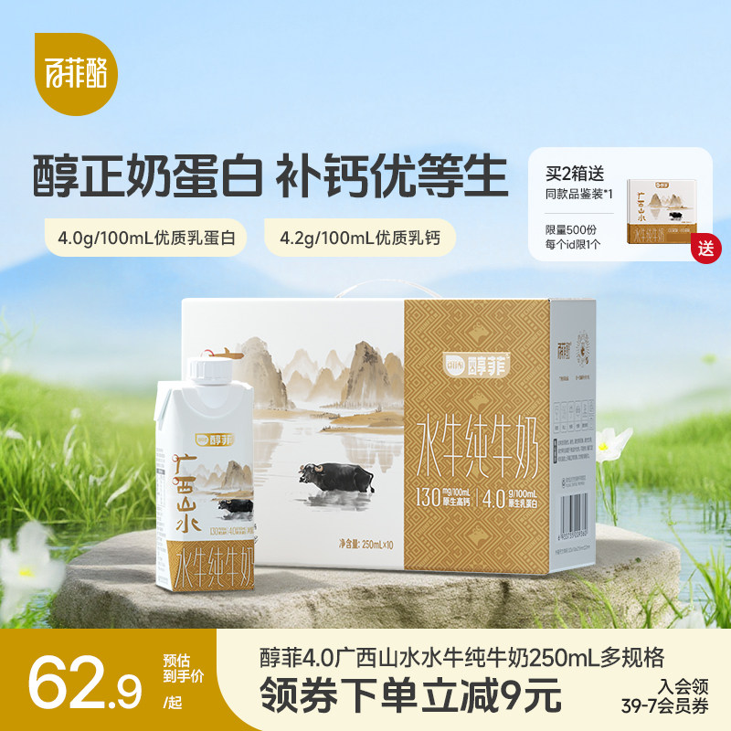 百菲酪4.0g醇菲水牛纯牛奶250ml*10瓶学生奶儿童营养早餐奶