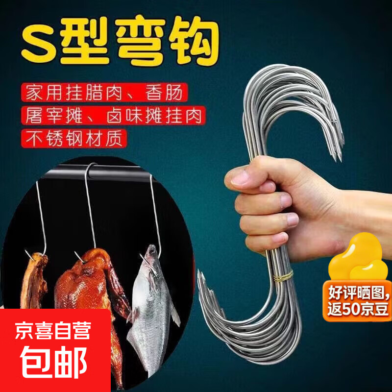 腊肉钩不锈钢尖头挂肉钩子晒咸肉猪肉烤鸭鱼厨房挂钩过年 不锈钢3mm粗18cm长 20个