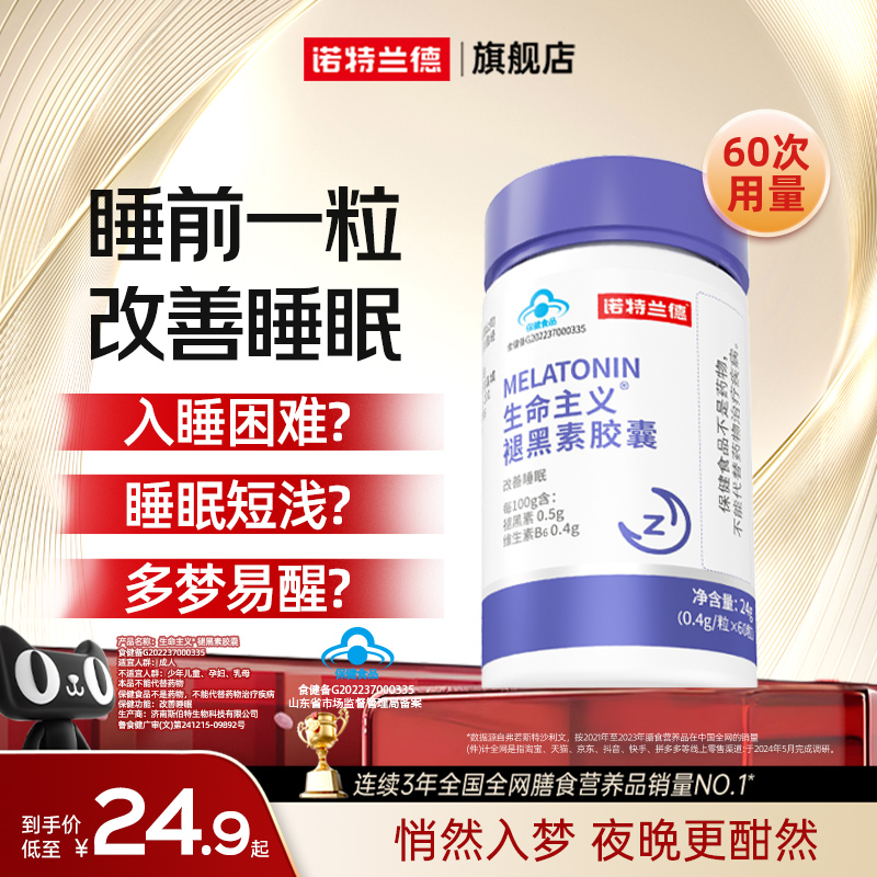 诺特兰德褪黑素安瓶助眠改善睡眠助眠维生素B6非褪黑素软糖正品