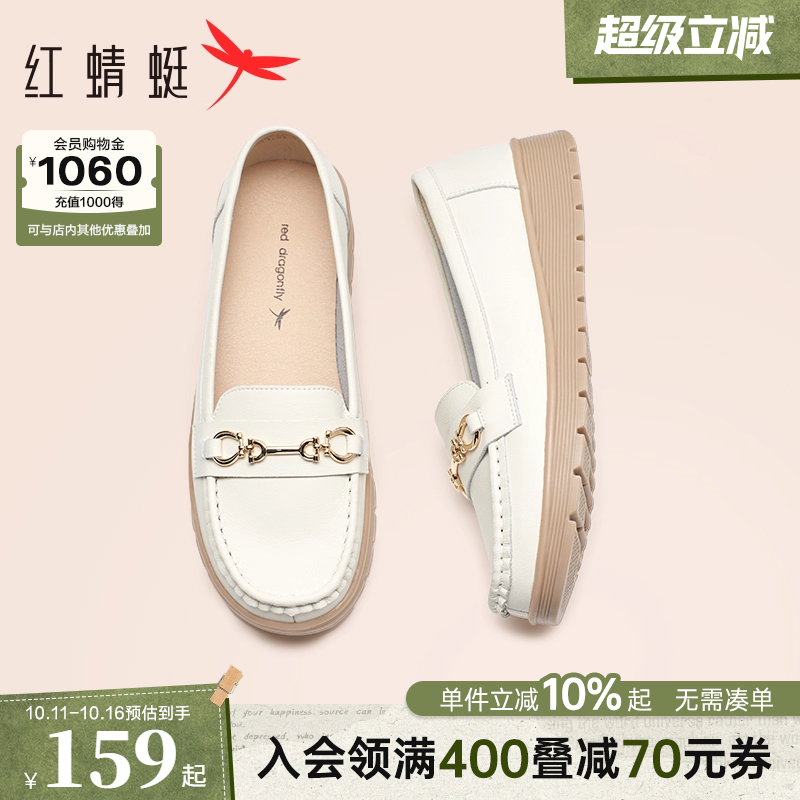 红蜻蜓妈妈鞋子秋季平底女鞋中老年大码鞋子舒适不累脚皮鞋女单鞋