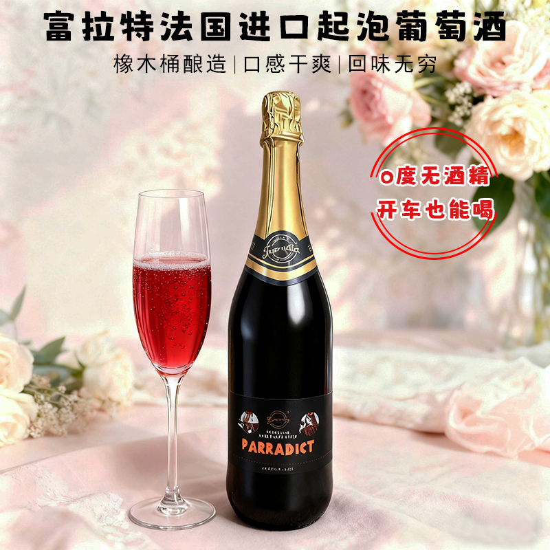 富拉特无醇起泡葡萄汁0度无酒精法国进口微甜葡萄酒香槟750ml整箱