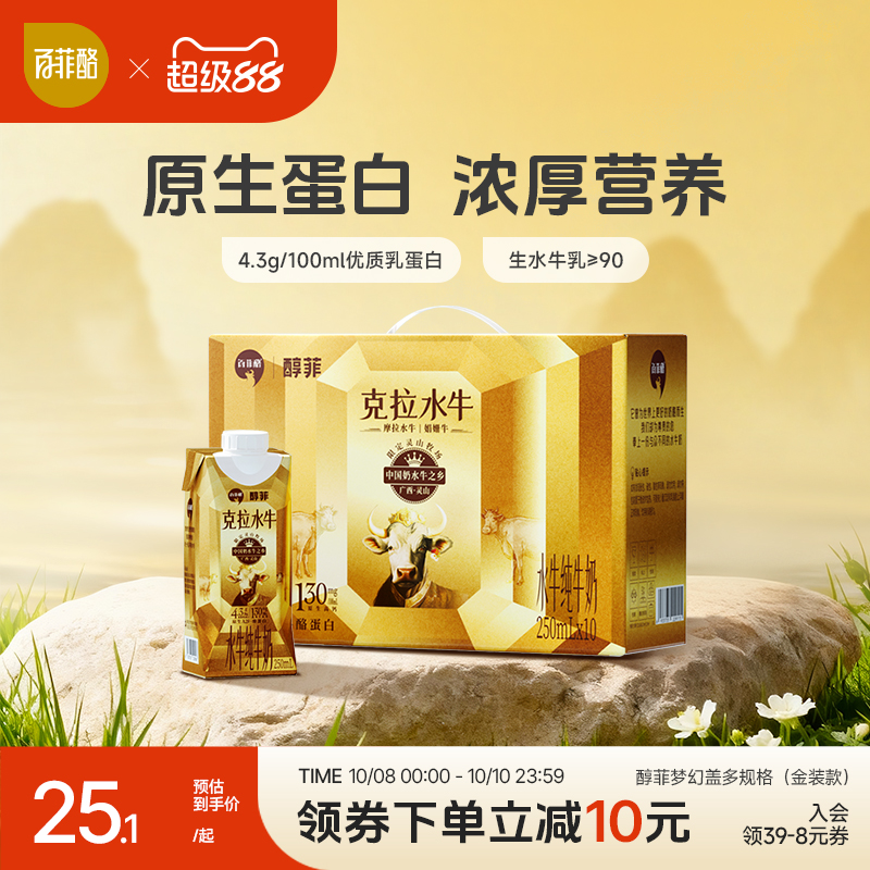 百菲酪醇菲水牛纯牛奶金装版4.3g蛋白A2β-酪蛋白早餐营养奶广西