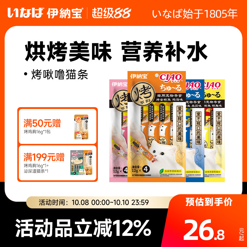 伊纳宝猫条妙好烤啾噜猫咪零食无诱食剂官方旗舰店正品100支整箱