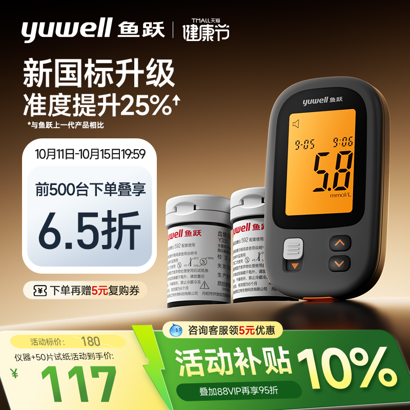 鱼跃血糖仪592家用测试医用测血糖的仪器高精准血糖试纸官方旗舰