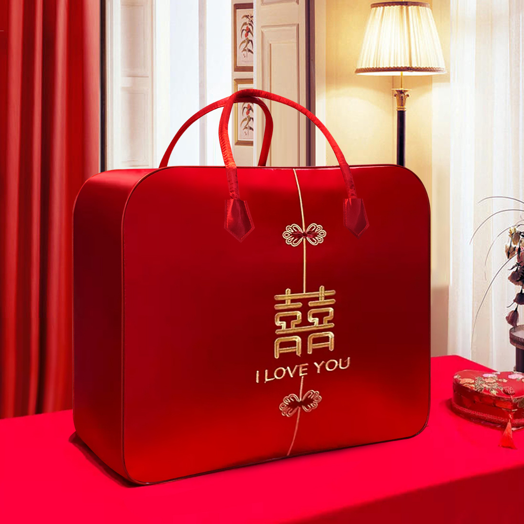 结婚陪嫁被子收纳袋婚庆四件套红色喜被装棉被的包装袋子缎面牛津