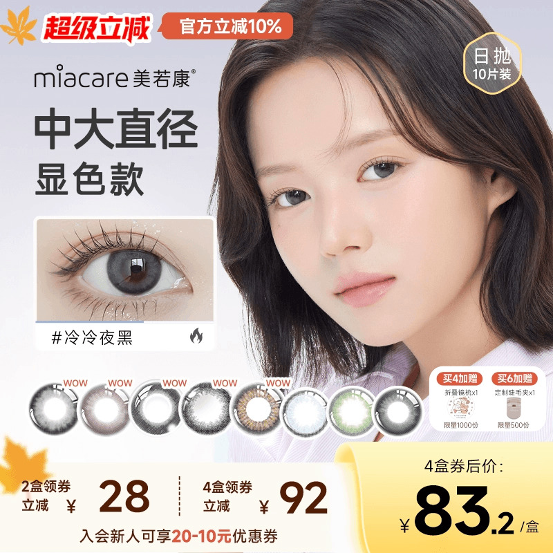 美若康硅水凝胶美瞳绽美日抛10片彩色隐形眼镜高透氧水润舒适旗舰