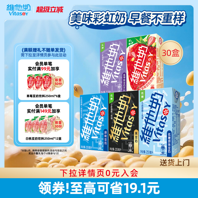 vitasoy维他奶多口味豆奶和豆奶饮料植物蛋白饮品整箱250ml*30盒