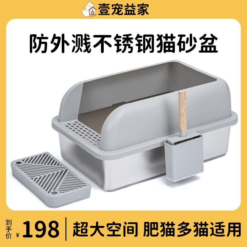 超大号不锈钢猫h砂盆开放式猫厕所防外溅带砂易清洗猫屎盆缅因可