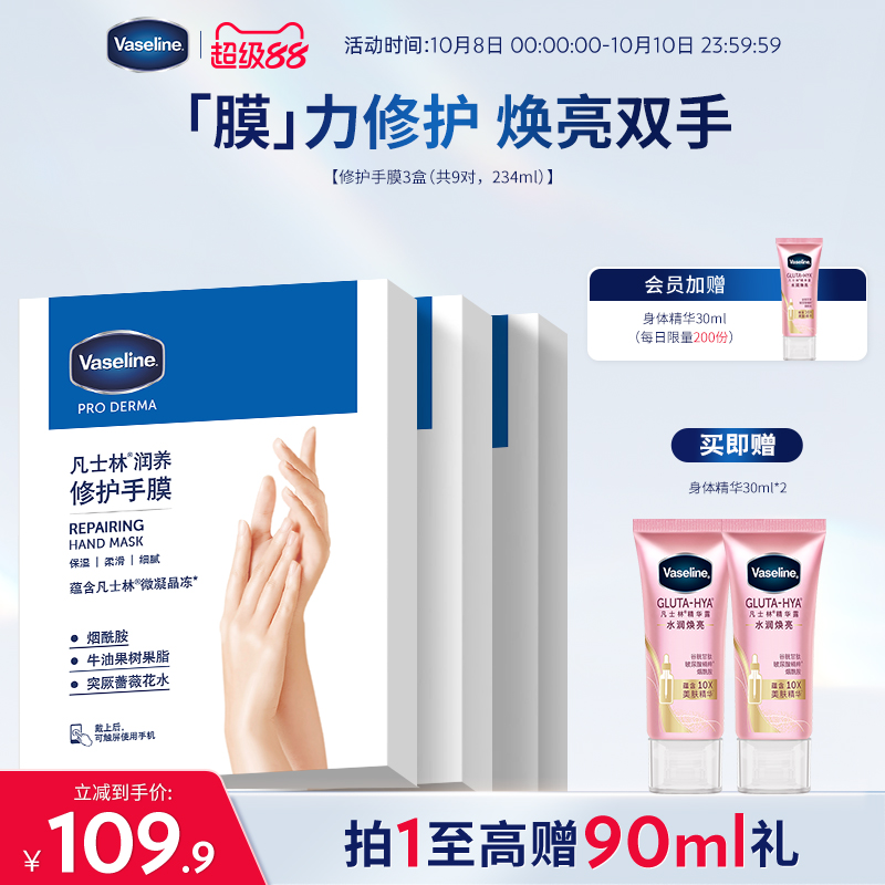 【倪妮推荐】凡士林手足膜烟酰胺保湿润养细嫩双手补水软化角质