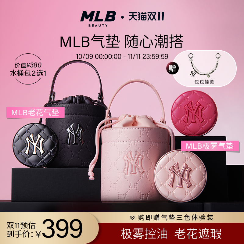 【加赠包挂链】MLB老花NY水桶包千金粉气垫粉底液遮瑕干皮控油BB