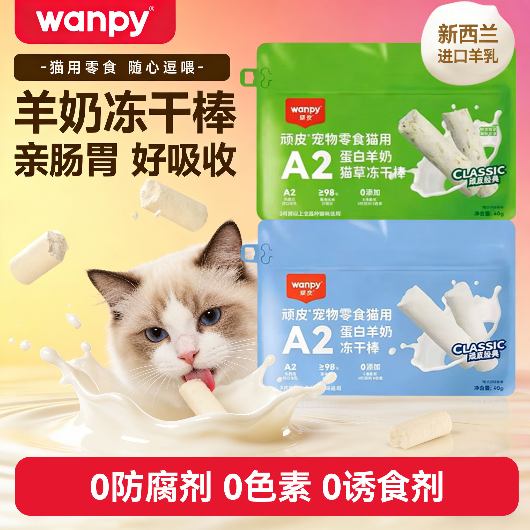 顽皮猫咪零食猫草棒冻干棒羊奶棒成幼猫训练磨牙零食饼干互动奖励
