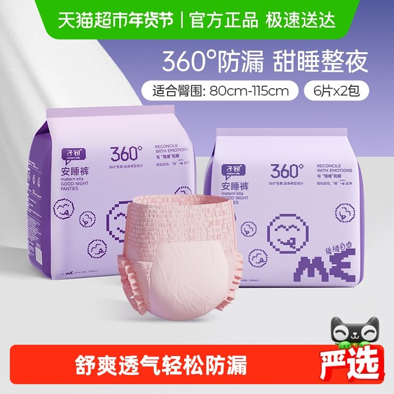子初经典情绪自由安睡裤产妇卫生巾姨妈巾夜用M-L12/XL12