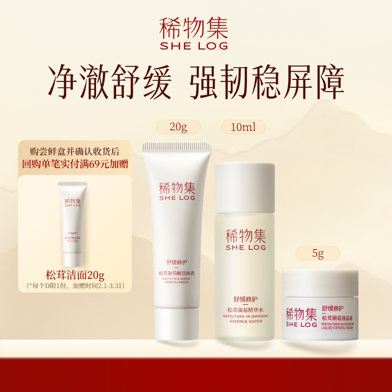 【百补派】稀物集松茸水10ml+松茸洁面20g+松茸霜5g补水修护体验