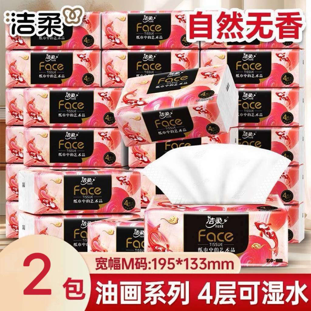 洁柔抽纸艺术锦鲤系列4层80抽2包纸巾可湿水面巾纸餐巾纸M码旅行