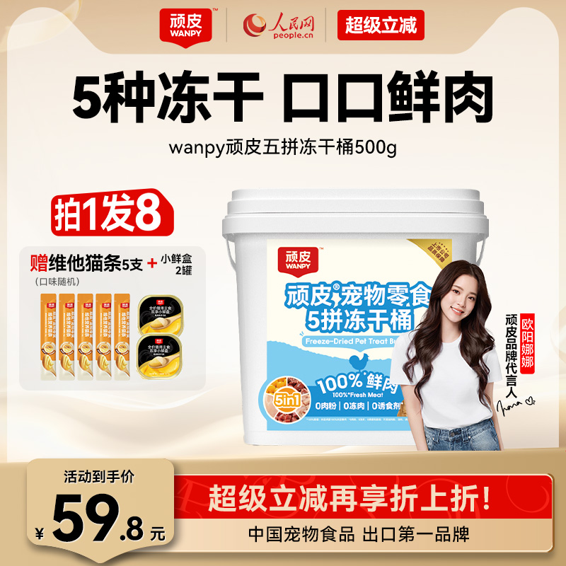 wanpy顽皮冻干猫零食5拼冻干桶100%鲜鸡胸肉非主食猫咪冻干粒500g