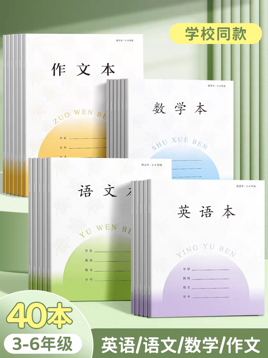 加厚新版3-6年级小学生江苏统一数学英语作文语文作三四五六练习