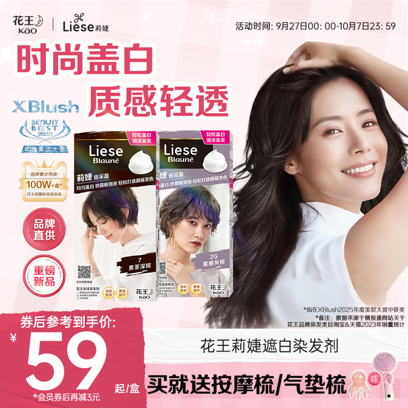 【官方】花王Liese莉婕泡泡染发剂泡沫染发膏遮白发自己染不伤发