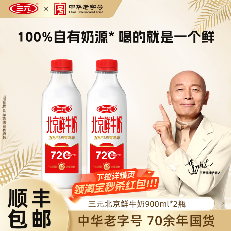 三元北京鲜牛奶72度瓶装纯牛奶生牛乳儿童营养孕妇低温冷藏牛奶