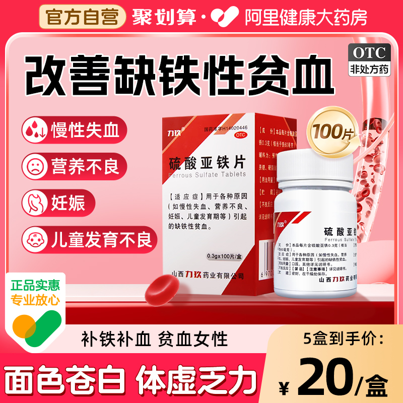 力玖硫酸亚铁片贫血补血药缺铁性贫血孕妇补铁补血贫血女性铁剂