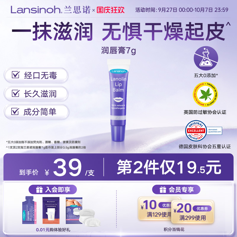 Lansinoh兰思诺羊毛脂润唇膏准孕妇可用防干裂滋润保湿补水