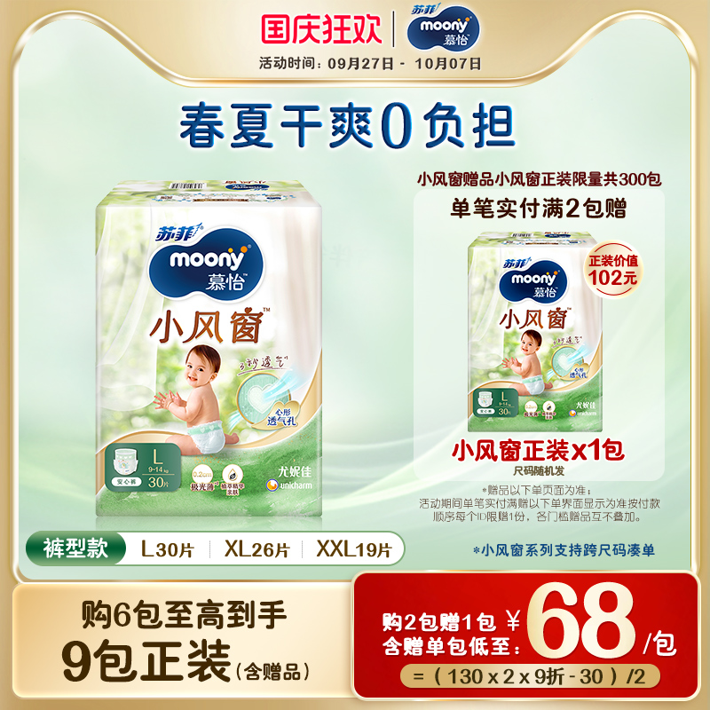 尤妮佳moony苏菲慕怡小风窗开心裤拉拉裤L码透气亲肤尿不湿