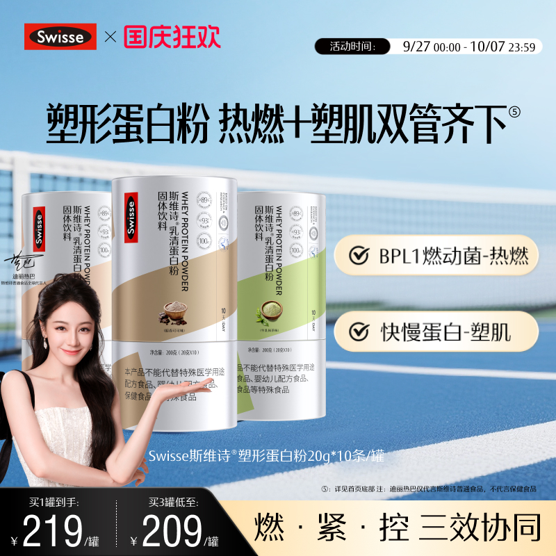 Swisse斯维诗塑形蛋白质粉分离乳清蛋白女性健身增肌运动便携包装