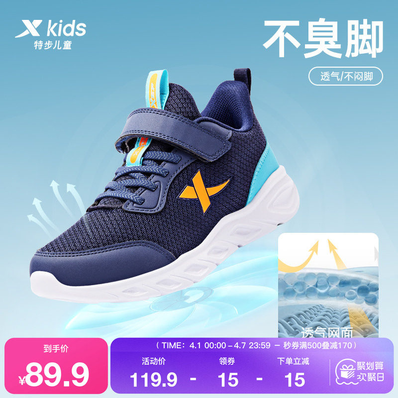 特步童鞋儿童运动鞋男童春夏季新款跑步鞋魔术贴网面透气鞋小学生