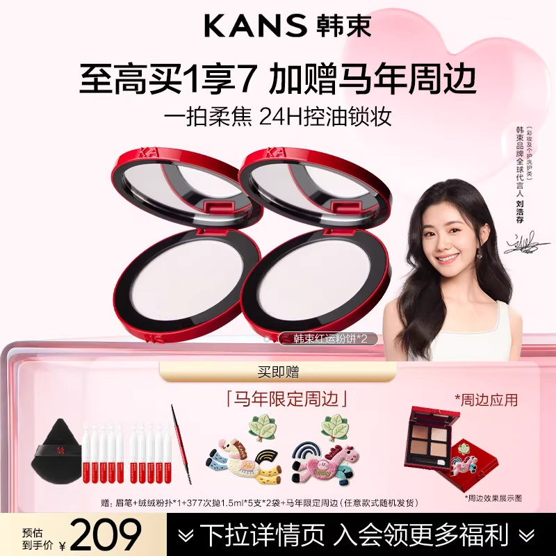 【刘浩存同款】韩束红运粉饼定妆控油持久蜜粉饼干油皮哑光正品
