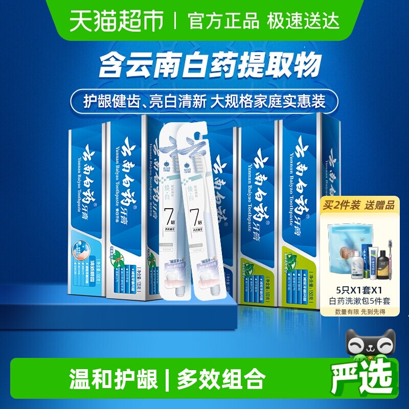 云南白药牙膏成人+牙刷套装套装清新口气亮白温和护龈官方正品