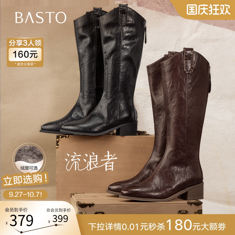 【关晓彤同款】百思图流浪者冬商场新款粗腿大筒围V口骑士长靴女