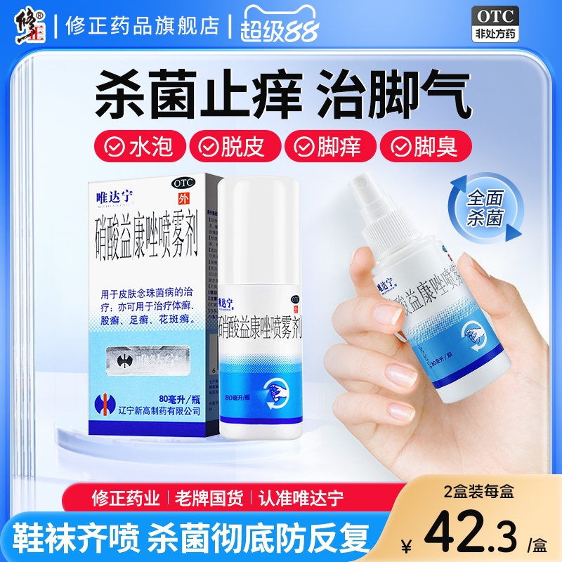 3盒修正唯达宁喷雾脚气止痒脱皮杀菌脚癣硝酸益康唑喷雾剂旗舰店