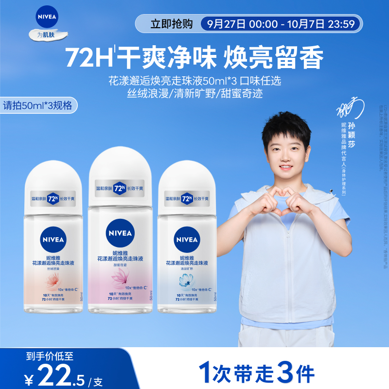 妮维雅花漾走珠腋下走珠女男士止汗持久干爽官方正品