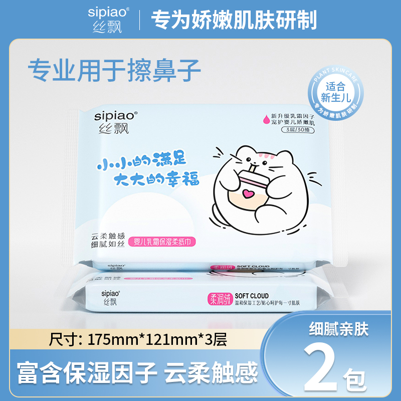 丝飘宝宝乳霜纸抽取式保湿纸巾柔纸巾家用实惠装婴儿用可擦手云柔