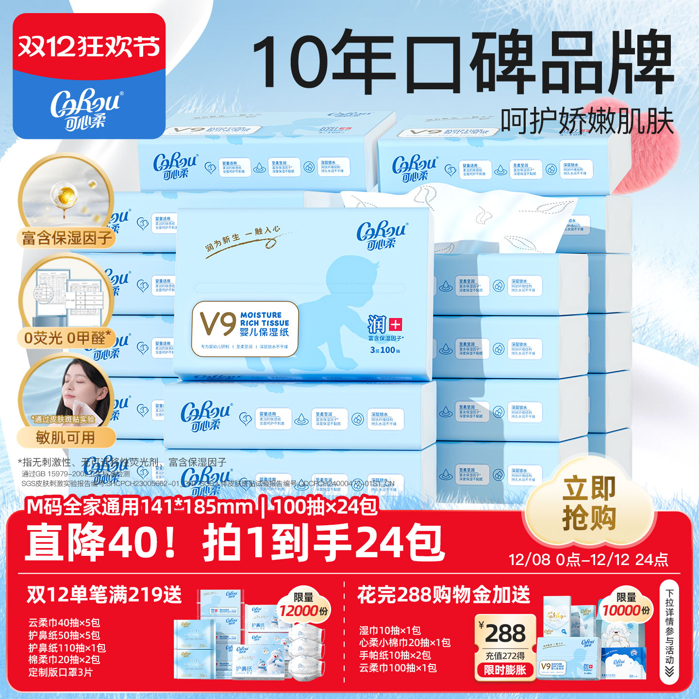 可心柔婴儿保湿柔纸巾干湿两用抽纸新生儿专用100抽24包