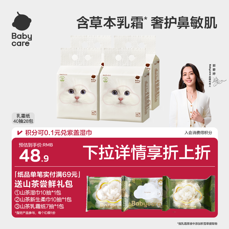 丝飘抽纸家用实惠装婴儿乳霜纸保湿柔纸巾宝宝擦手纸面巾纸便携装