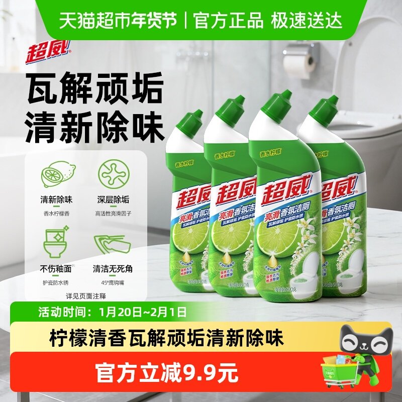 【下拉享优惠】超威洁厕剂亮滑香水柠檬香氛马桶除臭去污500g*4瓶