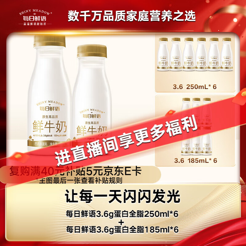 每日鲜语低温鲜牛奶 巴氏杀菌乳 3.6g蛋白250mlx6+3.6g蛋白185mlx6共12瓶