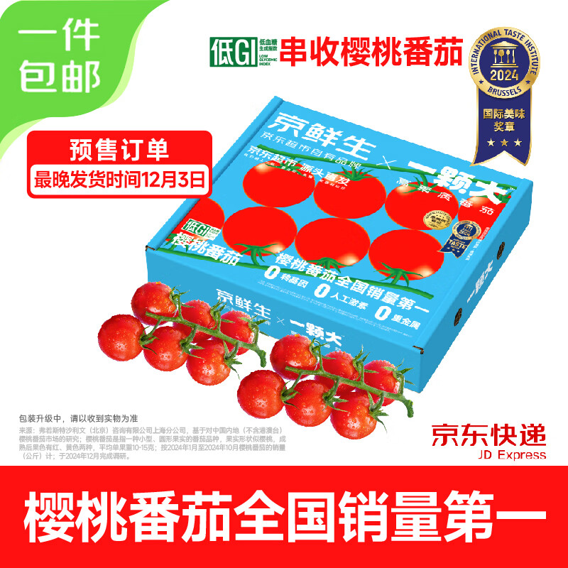 京鲜生&一颗大樱桃番茄带枝串净重850g水果西红柿圣女果源头直发包邮