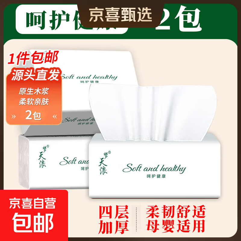 梦天浪【到手0.01元】整箱6400张40包抽纸家用纸巾柔软原木餐巾纸 天天特卖:甄选2包【新人专享】
