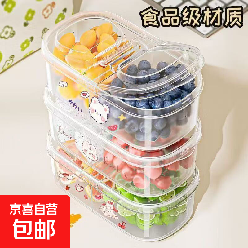 【限时促销】厨房水果保鲜盒便当盒露营野餐零食盒便携分装盒 双开保鲜盒饭盒1个