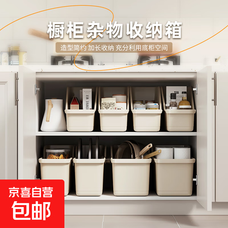 京东物流 厨房收纳整理盒锅盖调料带滑轮下水槽橱柜多功能收纳架 【升级款】特大号1个装 40*19*22cm