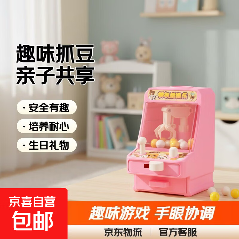 儿童抓娃娃机小型家用迷你夹公仔扭蛋机女孩男孩玩具生日礼物夹娃 趣味抓豆机【粉色】