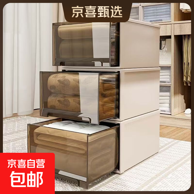 大容量收纳柜抽屉式柜内分层架储物柜衣橱玩具家用置物收纳 【27.5深度】透明茶