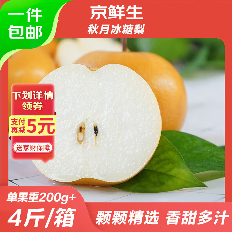 京鲜生 正宗莱阳秋月梨净重4斤 单果200g+ 一级果 生鲜水果 源头直发
