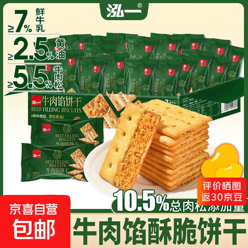 【好评率99%】牛肉馅酥脆夹心饼干整箱高颜值下午茶回购多 泓一135g牛肉饼干【10包】