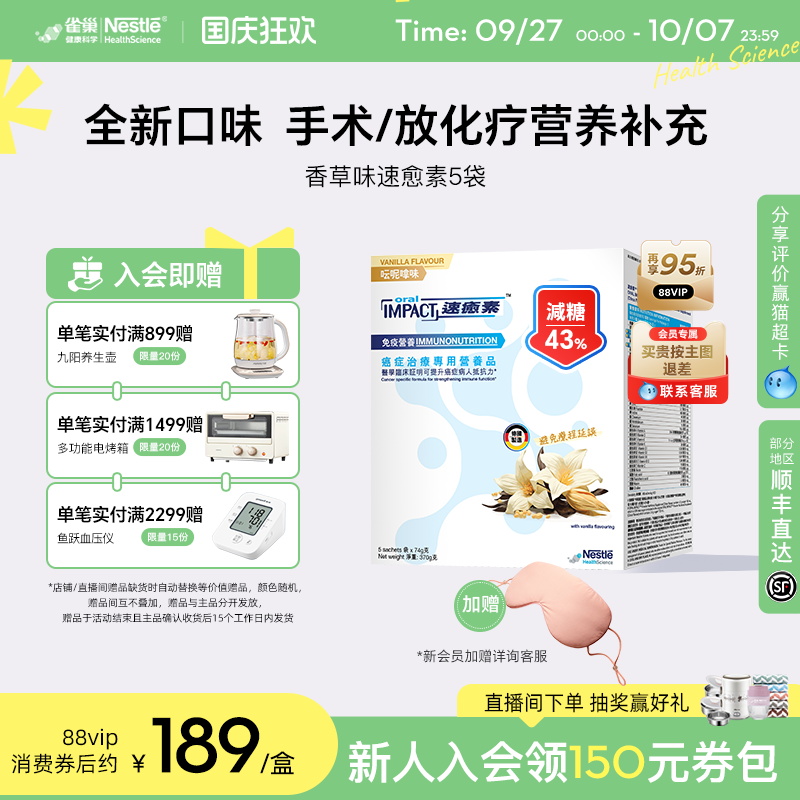 雀巢速愈素港版香草术后恢复放化疗营养品冲剂粉速熠素