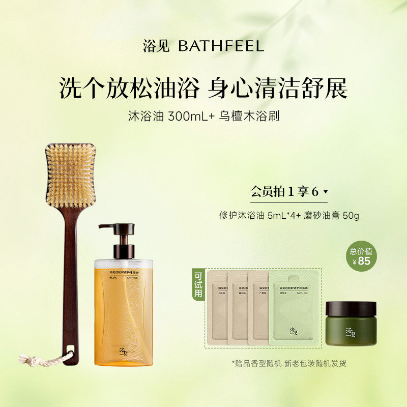 浴见红松籽修护沐浴油保湿芳香沐浴露+乌檀木长柄洗澡刷浴刷
