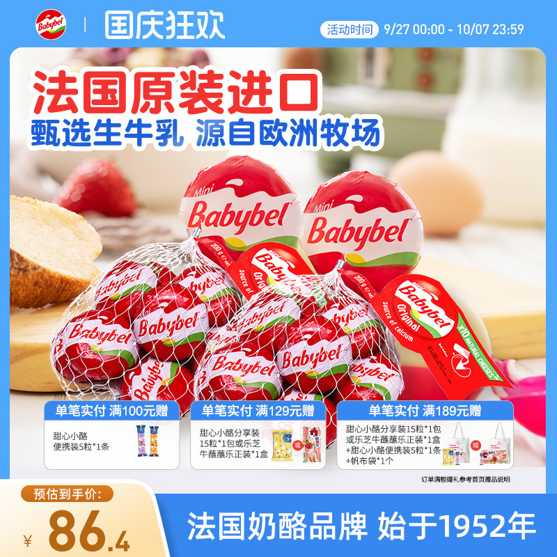 小贝勒原制奶酪原味进口即食儿童成长奶酪营养芝士天然干酪10粒*2