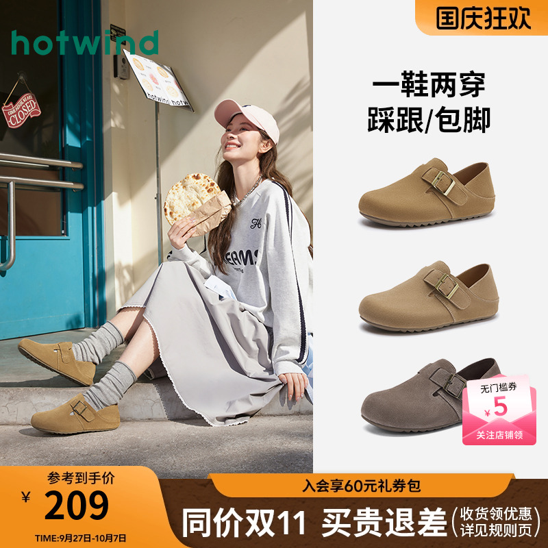 热风勃肯鞋女2025年春秋新款百搭舒适外穿拖鞋复古休闲两穿女鞋子